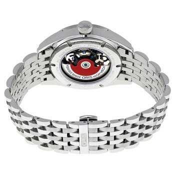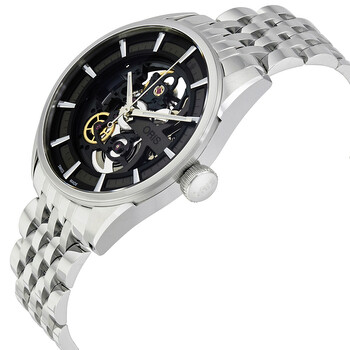 Stainless steel case with a stainless steel bracelet. Fixed stainless steel stainless steel bezel. Black skeleton dial with luminous silver-tone hands and index hour markers. Minute markers. Dial Type: Analog. Luminescent hands and markers. Small second sub-dial. Oris calibre 734, base SW 200-1 automatic movement with a 38-hour power reserve. Scratch resistant sapphire crystal. Screw down crown. Transparent case back. Round case shape, case size: 39 mm, case thickness: 11.2 mm. Band width: 19 mm. Fold over clasp with a push button release. Water resistant at 100 meters / 330 feet. Functions: hour, minute, small second. Casual watch style. Watch label: Swiss Made. Oris Artix Automatic Black Skeleton Dial Men's Watch 01 734 7714 4054-07 8 19 80.