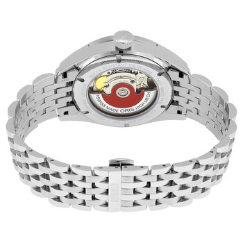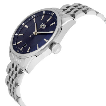 Stainless steel case with a stainless steel bracelet. Fixed stainless steel bezel. Blue dial with luminous silver-tone hands and index / Arabic numeral hour markers. Minute markers around the outer rim. Dial Type: Analog. Luminescent hands and markers. Date display at the 6 o'clock position. Oris calibre 733 automatic movement with a 38-hour power reserve. Scratch resistant sapphire crystal. Pull / push crown. Transparent case back. Round case shape. Case size: 39 mm. Case thickness: 11 mm. Band width: 20 mm. Band length: 8 inches. Fold over deployment clasp. Water resistant at 100 meters / 330 feet. Functions: date, hour, minute, second. Casual watch style. Watch label: Swiss Made. Item Variations: 01 733 7713 4035MB. Oris Artix Automatic Blue Dial Stainless Steel Men's Watch 733-7713-4035MB.