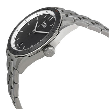 Stainless steel case with a stainless steel bracelet. Rotating bezel, with time scale. Black dial with silver-tone hands and index hour markers. Minute markers around the outer rim. Dial Type: Analog. Date display at the 6 o'clock position. Automatic movement. Scratch resistant domed anti-reflective Sapphire crystal. Screw down crown. Skeleton case back. Case diameter: 37 mm. Round case shape. Folding clasp. Water resistant at 100 meters / 330 feet. Functions: hour, minute, second. Casual watch style. Watch label: Swiss Made. Oris Artix GT Date Black Dial Stainless Steel Mid Size Watch 01 733 7671 4154-07 8 18 85.