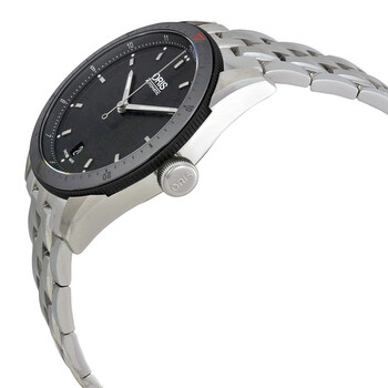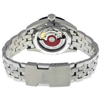 Stainless steel case with a stainless steel bracelet. Rotating bezel with time scale. Black dial with silver-tone hands and index hour markers. Dial Type: Analog. Date display at the 6 o'clock position. Automatic movement. Scratch resistant domed anti-reflective Sapphire crystal. Screw down crown. Transparent case back. Case diameter: 37 mm. Round case shape. Folding clasp. Water resistant at 100 meters / 330 feet. Functions: date, hour, minute, second. Casual watch style. Watch label: Swiss Made. Oris Artix GT Date Black Dial Stainless Steel Mid Size Watch 01 733 7671 4434-07 8 18 85.