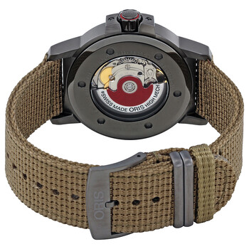 Grey PVD stainless steel case with a beige textile strap. Fixed grey PVD bezel. Grey dial with luminous silver-tone hands and Arabic numeral hour markers. Minute markers around the outer rim. Dial Type: Analog. Luminescent hands and markers. Date display at the 6 o'clock position. Oris calibre 735, base SW 220-1 automatic movement with a 38-hour power reserve. Scratch resistant sapphire crystal. Screw down crown. Transparent case back. Round case shape, case size: 42 mm, case thickness: 11.10 mm. Band width: 22 mm. Tang clasp. Water resistant at 100 meters / 330 feet. Functions: date, hour, minute, second. Military watch style. Watch label: Swiss Made. Oris BC3 Advanced Automatic Grey Dial Men's Watch 01 735 7641 4263-07 5 22 22G.