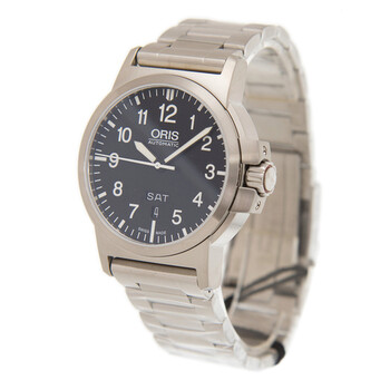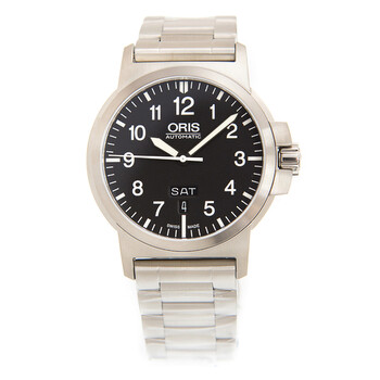 Silver-tone stainless steel case with a silver-tone stainless steel bracelet. Fixed silver-tone stainless steel bezel. Black dial with silver-tone hands and Arabic numeral hour markers. Minute markers around the outer rim. Dial Type: Analog. Luminescent hands and markers. Date display at the 6 o'clock position. Oris Calibre 735, base SW 220-1 automatic movement with a 38-hour power reserve. Scratch resistant sapphire crystal. Transparent case back. Round case shape. Case size: 42 mm. Band width: 22 mm. Water resistant at 100 meters / 330 feet. Functions: date, day, hour, minute, second. Additional Info: original box, international warranty card, manual (complete accessories). Luxury watch style. Watch label: Swiss Made. Oris BC3 Advanced Day Date Automatic Black Dial Unisex Watch 735 7641 4164 8 22 03.