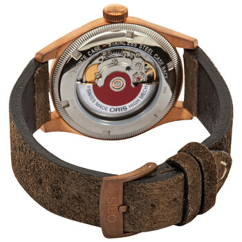 Bronze case with a dark brown leather strap. Fixed bronze bezel. Brown dial with luminous bronze hands and Arabic numeral hour markers. Minute markers. Date scale around the outer rim. Dial Type: Analog. Luminescent hands and markers. Pointer date. Oris Calibre 754, base SW 200-1 Automatic movement, based upon SW 200-1, containing 26 Jewels, bitting at 28800 vph, and has a power reserve of approximately 38 hours. Scratch resistant sapphire crystal. Screw down crown. Transparent case back. Round case shape, case size: 40 mm, case thickness: 12.1 mm. Band width: 20 mm. Tang clasp. Water resistant at 50 meters / 165 feet. Functions: date, hour, minute, second. Big Crown Pointer Date Series. Casual watch style. Watch label: Swiss Made. Oris Big Crown Pointer Date Automatic Brown Dial Men's Watch 01 754 7741 3166-07 5 20 74BR.