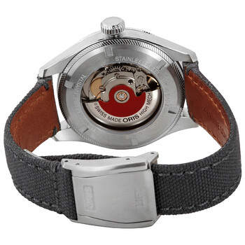 Stainless steel case with a black fabric strap. Fixed stainless steel bezel. Blue dial with luminous silver-tone hands and Arabic numeral hour markers. Minute markers around the outer rim. Dial Type: Analog. Luminescent hands and markers. Date display at the 3 o'clock position. Oris caliber 751 base SW 220-1 automatic movement with a 38-hour power reserve. Scratch resistant sapphire crystal. Screw down crown. Transparent case back. Round case shape. Case size: 41 mm. Case thickness: 12.2 mm. Band width: 20 mm. Deployment clasp. Water resistant at 100 meters / 330 feet. Functions: date, hour, minute, second. Big Crown Propilot Date Series. Sport watch style. Watch label: Swiss Made. Oris Big Crown ProPilot Date Automatic Blue Dial Men's Watch 01 751 7761 4065-07 3 20 05LC.