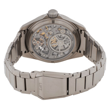 Titanium case and bracelet. Fixed titanium bezel. Skeleton dial with silver-tone hands and index hour markers. Dial Type: Analog. Two sub-dials displaying: small second and power reserve indicator. Oris Calibre 115 Hand Wind movement, containing 38 Jewels, bitting at 21600 vph, and has a power reserve of approximately 240 hours. Scratch resistant sapphire crystal. Screw down crown. Transparent case back. Round case shape, case size: 44 mm. Folding clasp. Water resistant at 100 meters / 330 feet. Functions: hour, minute, small second, power reserve indicator. Big Crown Propilot Series. Watch label: Swiss Made. Oris Big Crown ProPilot Hand Wind Skeleton Dial Men's Watch 01 115 7759 7153-Set7 22 01TLC.