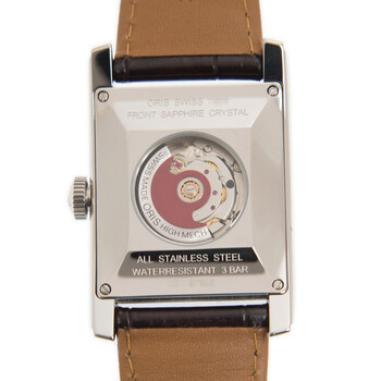 Silver-tone stainless steel case with a brown leather strap. Fixed silver-tone stainless steel bezel. Silver-tone dial with silver-tone hands and Arabic numeral and index hour markers. Minute markers around the outer rim. Dial Type: Analog. Date display at the 6 o'clock position. Oris Calibre 561, base ETA 2671 automatic movement with a 38-hour power reserve. Scratch resistant sapphire crystal. Pull / push crown. Transparent case back. Rectangle case shape. Case size: 25 mm. Water resistant at 30 meters / 100 feet. Functions: date, hour, minute, second. Additional Info: original box, international warranty card, manual (complete accessories). Luxury watch style. Watch label: Swiss Made. Oris Classic Date Automatic Silver Dial Unisex Watch 561 7692 4061 5 18 20FC.