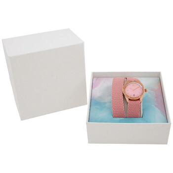 Bronze case with a pink textile strap. Uni-directional rotating bronze bezel. Pink dial with bronze hands and index hour markers. Minute markers around the outer rim. Dial Type: Analog. Luminescent hands and markers. Date display at the 6 o'clock position. Oris Calibre 733 Automatic movement, based upon Sellita SW200-1, containing 26 Jewels, bitting at 28800 vph, and has a power reserve of approximately 38 hours. Scratch resistant sapphire crystal. Screw down crown. Solid case back. Round case shape, case size: 38 mm. Buckle clasp. Water resistant at 100 meters / 330 feet. Functions: date, hour, minute, second. Divers Sixty-five Series. Casual watch style. Watch label: Swiss Made. Oris Divers Sixty-Five Automatic Pink Dial Unisex Watch 01 733 7771 3158-07 3 19 04BRS.