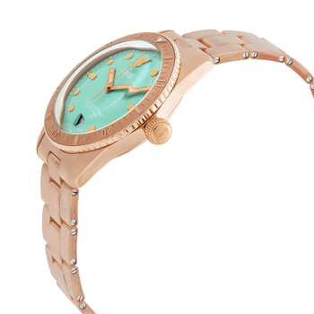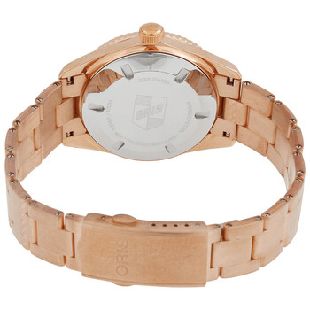 Bronze case and band. Uni-directional rotating bronze bezel. Green dial with bronze hands and index hour markers. Minute markers around the outer rim. Dial Type: Analog. Luminescent hands and markers. Date display at the 6 o'clock position. Oris Calibre 733, base SW 200-1 Automatic movement, based upon SW 200-1, containing 26 Jewels, bitting at 28800 vph, and has a power reserve of approximately 38 hours. Scratch resistant sapphire crystal. Screw down crown. Solid case back. Round case shape, case size: 38 mm. Deployment with push button clasp. Water resistant at 100 meters / 330 feet. Functions: date, hour, minute, second. Divers Series. Casual watch style. Watch label: Swiss Made. Oris Divers Sixty-Five Bronze Automatic Green Dial Unisex Watch 01 733 7771 3157-07 8 19 15.