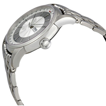 Stainless steel case with a stainless steel link bracelet. Fixed stainless steel bezel. Silver and grey guilloche dial with luminous silver-tone hands and index hour markers. Minute markers. Date scale around the outer rim with pointer. Seconds sub-dial at the 6 o'clock position. Automatic movement. Scratch resistant anti reflective sapphire crystal. Screw down crown. Screw down skeletal case back. Case diameter: 42.5 mm. Case thickness: 10.9 mm. Expansion clasp. Water resistant at 30 meters / 100 feet. Oris Men's Artelier Silver Dial Stainless Steel Bracelet Watch 644-7597-4051MB.