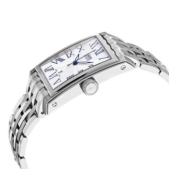 Stainless steel case with a stainless steel bracelet. Fixed bezel. Silver dial. Dial Type: Analog. Luminescent hands. Oris Calibre 583, base ETA 2688/2671 automatic movement with a 38-hour power reserve. Scratch resistant sapphire crystal. Pull / push crown. Rectangle case shape. Case size: 44 mm x 30 mm. Water resistant at 50 meters / 165 feet. Functions: date, hour, minute, second. Dress watch style. Watch label: Swiss Made. Item Variations: 583 7657 4071MB, 583.7657.4071MB, 58376574071MB. Oris Rectangular Automatic Silver Dial Men's Watch 01 583 7657 4071-07.