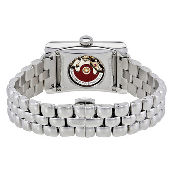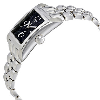 Stainless steel case with a stainless steel bracelet. Fixed stainless steel bezel. Black dial with silver-tone hands. Arabic numerals mark the 3, 6, 9 and 12 o'clock positions. Dial Type: Analog. Date display at the 6 o'clock position. Oris 561, base ETA 2671 automatic movement with a 38-hour power reserve. Scratch resistant sapphire crystal. Pull / push crown. Transparent case back. Case size: 25.90 mm x 37 mm. Rectangle case shape. Band width: 16 mm. Fold over clasp with a safety release. Water resistant at 30 meters / 100 feet. Functions: date, hour, minute, second. Casual watch style. Watch label: Swiss Made. Oris Rectangular Date Automatic Ladies Watch 01 561 7620 4064-07 8 16 75.
