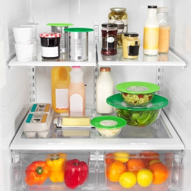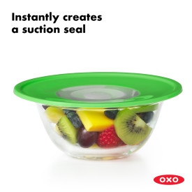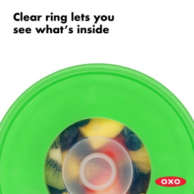 OXO-ის პატარა, მრავალჯერადი გამოყენების სილიკონის თავსახური შესანიშნავია საკვების შესანახად და იდეალურად ჩაანაცვლებს პლასტმასის თუ ფოლგის შესაფუთ ქაღალდებს. უბრალოდ დაახურეთ თავზე პლასტმასის, კერამიკის, ფოლადი ან მინის კონტეინერებს და მოათავსეთ მაცივარში. თავსახურის ბრტყელი დიზაინი და უსაფრთხოდ დალუქვის შესაძლებლობა მაცივრის ორგანიზების კარგი საშუალებაა, ისე რომ მაცივარში ადგილი გამოთავისუფლდეს. მისი გამჭვირვალე ზედაპირი საშუალებას გაძლევთ დაინახოთ კონტეინერის შიგთავსი