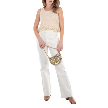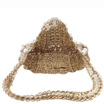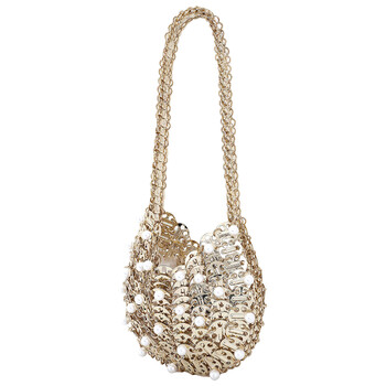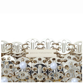 Paco Rabanne Ladies Shoulder Bag. SKU: 23ASS0337MET475-LIGHT GOLD / PEARL. Color: Light Gold/Pearl. Size: 20cm x 13cm x 2cm. Paco Rabanne 1969 Moon Pearl Embellished Shoulder Bag. Capturing the essence of Rabanne, the 1969 Moon bag adds a bold, retro touch to your collection. Featuring pearl-embellished gold discs layered with tonal rings and a comfortable shoulder strap, it’s both striking and easy to wear. 100% Metal, 100% Pearl. Made in Italy.