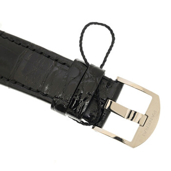 Silver-tone stainless steel case with a shiny black alligator leather strap. Fixed silver-tone stainless steel bezel. Grey dial with gold-tone hands and Arabic numeral hour markers. Dial Type: Analog. Date display at the 3 o'clock position. One subdial displaying: small second. Panerai Calibre P.900 Automatic movement, based upon Panerai OP XXXIV, containing 25 Jewels, bitting at 28800 vph, and has a power reserve of approximately 72 hours. Scratch resistant sapphire crystal. Solid case back. Cushion case shape, case size: 38 mm. Buckle clasp. Water resistant at 30 meters / 100 feet. Functions: date, hour, minute, second. Additional Info: original box, international warranty card, manual (complete accessories). Luminor Due Series. Luxury watch style. Watch label: Swiss Made. Panerai Luminor Due Automatic Grey Dial Men's Watch PAM01247.
