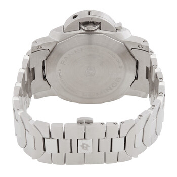 Silver-tone stainless steel case and bracelet. Fixed silver-tone stainless steel bezel. White dial with silver-tone hands and index-Arabic numeral hour markers. Dial Type: Analog. Luminescent hands and markers. Date display at the 3 o'clock position. One subdial displaying: small seconds. Panerai Calibre P.9010 Automatic movement, containing 31 Jewels, composed of 200 parts, bitting at 28800 vph, and has a power reserve of approximately 72 hours. Scratch resistant sapphire crystal. Solid case back. Cushion case shape, case size: 44 mm. Fold over clasp with a safety release. Water resistant at 30 meters / 100 feet. Functions: date, hour, minute, second. Luminor 1950 Series. Casual watch style. Watch label: Swiss Made. Panerai Luminor 1950 Automatic White Dial Unisex Watch PAM01564.