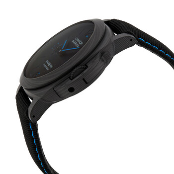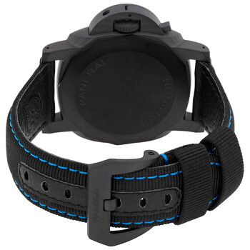 Carbotech (peek) case with a black nylon strap. Fixed black carbotech (peek) bezel. Black dial with luminous black hands and index hour markers. Arabic numerals app[ear atthe 3, 6, 9 and 12 o'clock positions. Dial Type: Analog. Luminescent hands and markers. Date display at the 3 o'clock position. One subdial displaying: small seconds. Panerai Calibre P.9010 Automatic movement, containing 31 Jewels, composed of 200 parts, bitting at 28800 vph, and has a power reserve of approximately 72 hours. Scratch resistant sapphire crystal. Solid case back. Cushion case shape, case size: 44 mm. Tang clasp. Water resistant at 30 meters / 100 feet. Functions: date, hour, minute, small second. Luminor Marina Series. Luxury watch style. Watch label: Swiss Made. Panerai Luminor Marina Automatic Black Dial Men's Watch PAM02661.