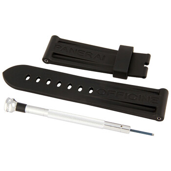 Silver-tone stainless steel case with a brown leather strap. Fixed silver-tone stainless steel bezel. Black dial with luminous hands and index hour markers. Arabic numerals mark the 3, 6 and 12 o'clock positions. Dial Type: Analog. Luminescent hands and markers. Seconds sub-dial at the 9 o'clock position subdials. Panerai Calibre OP XI Hand Wind movement, based upon ETA 6497-1, containing 17 Jewels, bitting at 21600 vph, and has a power reserve of approximately 56 hours. Scratch resistant glareproof sapphire crystal. Stainless steel - protected by lever crown. Skeleton case back. Cushion case shape. Case size: 44 mm. Band length: 8 inches. Tang clasp. Water resistant at 300 meters / 1000 feet. Functions: hour, minute, small second, chronometer. Dive watch style. Watch label: Swiss Made. Item Variations: PAM 111, PAM111. Panerai Luminor Marina Men's Watch PAM00111.