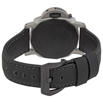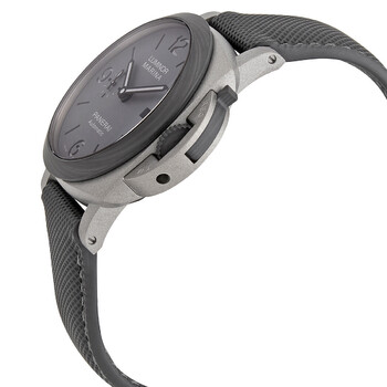 Titanium case with a grey rubber strap. Fixed tachymeter scale carbotech bezel. Grey dial. Dial Type: Analog. Date display at the 3 o'clock position. One subdial displaying: small second. Panerai Calibre P.9010 Automatic movement, containing 31 Jewels, composed of 200 parts, bitting at 28800 vph, and has a power reserve of approximately 72 hours. Scratch resistant sapphire crystal. Solid case back. Case size: 44 mm. Tang clasp. Water resistant at 300 meters / 1000 feet. Functions: date, hour, minute, small second. Luminor Series. Luxury watch style. Watch label: Swiss Made. Panerai Luminor Marina TuttoGrigio Automatic Grey Dial Men's Watch PAM01662.