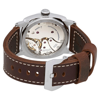Panerai Radiomir stainless steel on strap ref. PAM662 Stainless steel case with a leather strap. Fixed stainless steel bezel. Brown dial with index-Arabic numerals hour markers. Dial Type: Analog. Luminescent hands and markers. Panerai Calibre P.3000 Hand Wind movement, containing 21 Jewels, composed of 160 parts, bitting at 21600 vph, and has a power reserve of approximately 72 hours. Scratch resistant sapphire crystal. Skeleton transparent exhibition see through case back. Cushion case shape. Case size: 47 mm. Band width: 26 mm. Water resistant at 100 meters / 330 feet. Functions: hour, minute. Additional Info: limited edition 1000 pieces. Luxury watch style. Watch label: Swiss Made. Panerai Radiomir 1940 Hand Wind Brown Dial Men's Watch PAM00662.