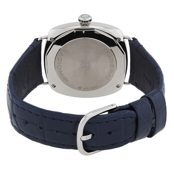 Silver-tone stainless steel case with a blue alligator band. Fixed silver-tone stainless steel bezel. Blue dial with rose gold-tone hands and index hour markers. Dial Type: Analog. Luminescent hands and markers. Date display at the 3 o'clock position. One subdial displaying: small second. Panerai Calibre P.900 Automatic movement, based upon Panerai OP XXXIV, containing 25 Jewels, bitting at 28800 vph, and has a power reserve of approximately 72 hours. Scratch resistant sapphire crystal. Solid case back. Round case shape, case size: 40 mm. Water resistant at 30 meters / 100 feet. Functions: date, hour, minute, small second. Additional Info: original box,manual (complete accessories). Radiomir Series. Luxury watch style. Watch label: Swiss Made. Panerai Radiomir Automatic Blue Dial Men's Watch PAM01571.