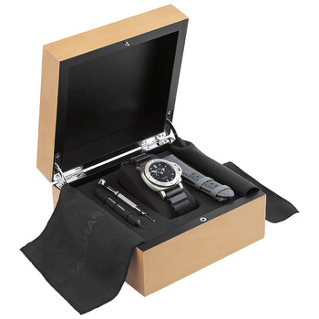 Silver-tone stainless steel case with a black rubber strap. Uni-directional rotating silver-tone stainless steel bezel. Black dial with silver-tone hands and index hour markers. Dial Type: Analog. Luminescent hands and markers. Date display at the 3 o'clock position. One subdial displaying: small second. Panerai Calibre P.900 Automatic movement, based upon Panerai OP XXXIV, containing 25 Jewels, bitting at 28800 vph, and has a power reserve of approximately 72 hours. Scratch resistant sapphire crystal. Screw down crown. Round case shape, case size: 42 mm. Water resistant at 300 meters / 1000 feet. Functions: date, hour, minute, small second. Additional Info: original box, manual (complete accessories). Submersible Series. Dive watch style. Watch label: Swiss Made. Panerai Submersible 42mm Automatic Black Dial Men's Watch PAM02973.
