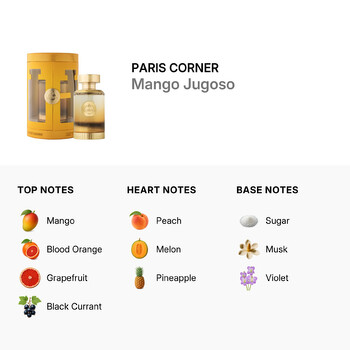 From the very first spray, Mango Jugoso bursts open with juicy top notes of ripe mango, blood orange, grapefruit, and black currant. These refreshing fruits create a lively, energetic scent that grabs attention in all the right ways. As the fragrance settles, heart notes of peach, melon, and pineapple take center stage, adding a tropical twist that feels playful and bright.