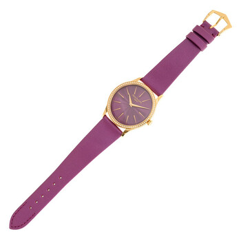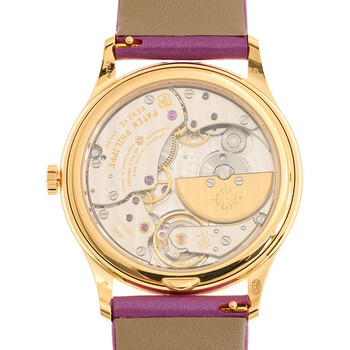 18kt rose gold case with a leather strap. Fixed bezel with diamond set. Purple dial with index hour markers. Dial Type: Analog. Patek Philippe Calibre 240 Automatic movement, containing 27 Jewels, composed of 161 parts, bitting at 21600 vph, and has a power reserve of approximately 48 hours. Scratch resistant sapphire crystal. Screw down crown. Transparent see through case back. Round case shape, case size: 35 mm, case thickness: 7.4 mm. Tang clasp. Water resistant at 50 meters / 165 feet. Functions: hour, minute. Additional Info: original box, manual (complete accessories). Calatrava Series. Luxury watch style. Watch label: Swiss Made. Patek Philippe Calatrava Automatic Diamond Purple Dial Ladies Watch 4997-200R-001.