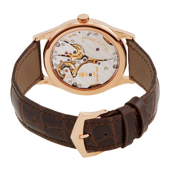 18kt rose gold case with a brown (alligator) leather strap. Fixed 18kt rose gold bezel. White dial with rose gold-tone hands and index hour markers. Minute markers around the outer rim. Dial Type: Analog. Small seconds sub-dial. Patek Philippe calibre 30-255 PS hand wind movement with a 65-hour power reserve. Scratch resistant sapphire crystal. Transparent case back. Round case shape. Case size: 39 mm. Case thickness: 8.08 mm. Tang clasp. Water resistant at 30 meters / 100 feet. Functions: hour, minute, second. Additional Info: original box, manual (complete accessories). Calatrava Series. Luxury watch style. Watch label: Swiss Made. Patek Philippe Calatrava Hand Wind White Dial Men's Watch 6119R-001.