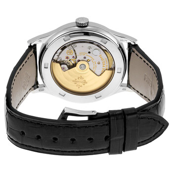18kt white gold case with a black alligator leather strap. Fixed 18kt white gold bezel. Opaline white dial with white gold dauphine-style shape hands and index hour markers. Minute markers around the outer rim. Dial Type: Analog. Date display at the 3 o'clock position. Patek Philippe Calibre 324 S C Automatic movement, containing 29 Jewels, composed of 213 parts, bitting at 28800 vph, and has a power reserve of approximately 45 hours. Scratch resistant sapphire crystal. Pull / push crown. Sapphire case back. Round case shape, case size: 38 mm, case thickness: 8.6 mm. Band width: 20 mm, band length: 8 inches. Tang clasp. Water resistant at 25 meters / 80 feet. Functions: date, hour, minute, second. Luxury watch style. Watch label: Swiss Made. Item Variations: 5296G 010, 5296G.010, 5296G010. Patek Philippe Calatrava Opaline White Dial 18kt White Gold Men's Watch 5296G-010.