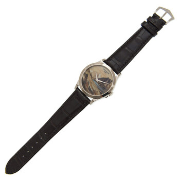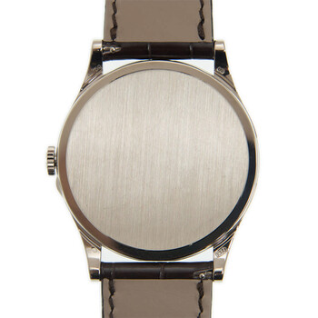 18kt white gold case with a brown alligator band. Fixed silver-tone 18kt white gold bezel. Swiss alps / lac d'emosson dial with silver-tone hands. Dial Type: Analog. Patek Philippe Calibre 240 automatic movement with a 48-hour power reserve. Scratch resistant sapphire crystal. Screw down crown. Solid case back. Round case shape. Case size: 38.60 mm. Tang clasp. Functions: hour, minute. Additional Info: original box, international warranty card, manual (complete accessories). Luxury watch style. Patek Philippe Calatrava Swiss Alps / Lac d'Emosson Automatic Unisex Watch 5089G-060.