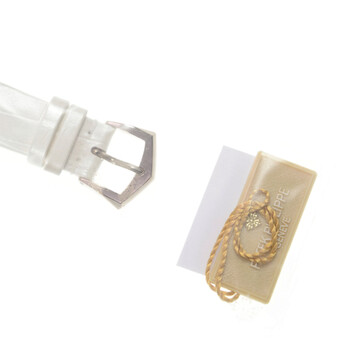 18kt white gold case with a white alligator leather strap. Fixed 18kt white gold 44 diamond set (~0.47 ct) bezel. White dial with white leaf-style shape hands and index hour markers. Minute markers around the outer rim. Dial Type: Analog. One - small seconds subdial. Patek Philippe Calibre 215 PS Hand Wind movement, based upon Patek Philippe 215, containing 18 Jewels, bitting at 28800 vph, and has a power reserve of approximately 44 hours. Scratch resistant hardlex crystal. Transparent case back. Round case shape. Case size: 33 mm. Buckle clasp. Water resistant at 30 meters / 100 feet. Functions: hour, minute, small second. Additional Info: original box, international warranty card, manual (complete accessories). Luxury watch style. Watch label: Swiss Made. Patek Philippe Calatrava White Dial Watch 7122-200G-001.