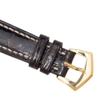 Gold-tone 18kt rose gold case with a brown alligator band. Fixed 18kt rose gold bezel. Silver-tone with 108 diamonds (~0.31 ct.) dial with gold-tone leaf-style shape hands and Roman numeral hour markers. Minute markers around the outer rim. Dial Type: Analog. One - small second subdial. Patek Philippe Calibre 215 PS Hand Wind movement, based upon Patek Philippe 215, containing 18 Jewels, bitting at 28800 vph, and has a power reserve of approximately 44 hours. Scratch resistant sapphire crystal. Transparent case back. Cushion case shape, case size: 30 × 33.8 mm, case thickness: 7.6 mm. Tang clasp. Water resistant at 30 meters / 100 feet. Functions: hour, minute, small second. Additional Info: original box, international warranty card, manual (complete accessories). Luxury watch style. Watch label: Swiss Made. Patek Philippe Gondolo Hand Wind Silver Dial Ladies Watch 7041R-001.