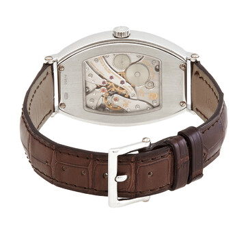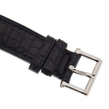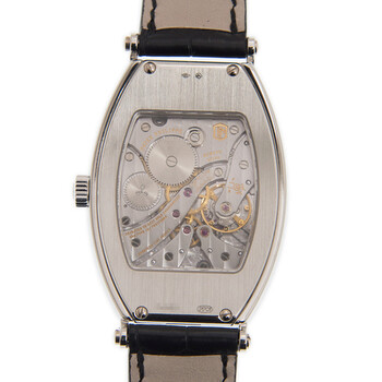 White platinum case with a black leather strap. Fixed white platinum bezel. White gold dial with black spade-shaped hands and Arabic numeral hour markers. Minute markers around the inner ring. Dial Type: Analog. Patek Philippe Calibre 25-21 REC hand wind movement with a 44-hour power reserve. Scratch resistant sapphire crystal. Pull / push crown. Transparent sapphire case back. Tonneau case shape, case size: 42 mm x 32 mm, case thickness: 9.15 mm. Tang clasp. Water resistant at 30 meters / 100 feet. Functions: hour, minute. Luxury watch style. Watch label: Swiss Made. Item Variations: 5098P 001, 5098P.001, 5098P001. Patek Philippe Gondolo Mechanical Gold Dial Leather Men's Watch 5098P-001.