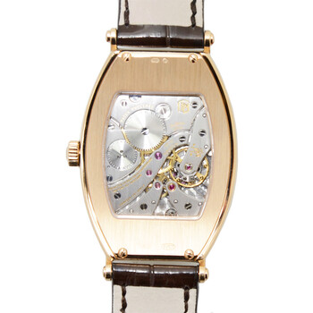 18kt rose gold case with a brown alligator leather strap. Fixed 18kt rose gold bezel. Rhodiumed silver and brown guilloche dial with brown leather spade-shaped hands and Arabic hour markers. Minute markers around the outer rim. Dial Type: Analog. Patek Philippe Calibre 25-21 REC hand wind movement with a 44-hour power reserve. Scratch resistant sapphire crystal. 18k rose gold, fluted crown. Tonneau case shape, case size: 42 mm x 32 mm, case thickness: 8.9 mm. Deployment clasp. Water resistant at 30 meters / 100 feet. Functions: hour, minute. Luxury watch style. Watch label: Swiss Made. Patek Philippe Gondolo Silver Brown Dial 18kt Rose Gold Brown Leather Men's Watch 5098R.