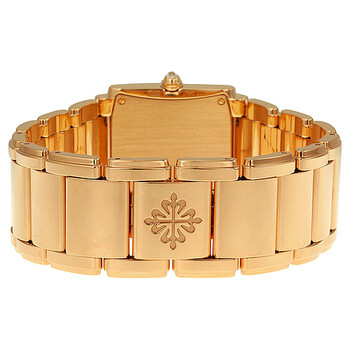 18kt rose gold case with a 18kt rose gold bracelet. Fixed bezel set with diamonds rose gold 18kt rose gold bezel. Brown dial with gold-toned hands and diamond hour markers. Dial Type: Analog. Patek Philippe Calibre E15 quartz movement. Scratch resistant sapphire crystal. Case size: 30 mm x 25 mm. Case thickness: 6 mm. Rectangle case shape. Deployment clasp. Water resistant at 25 meters / 80 feet. Functions: hour, minute. Additional Info: case set with 34 diamonds (~0.66 ct.). Luxury watch style. Watch label: Swiss. Patek Philippe Twenty 4 Diamond 18K Rose Gold Ladies Watch 4910-11R-010.