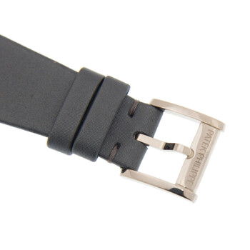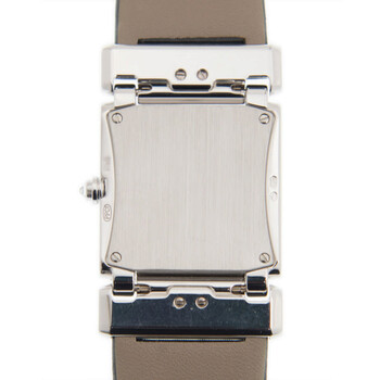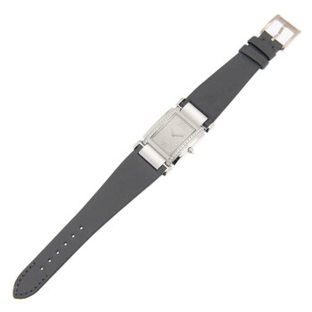 18kt white gold case with a grey satin strap. Fixed 18kt white gold bezel set with diamonds. Eternal gray dial with luminous silver-tone hands and diamond hour markers. Roman numerals appear at the 6 and 12 o'clock positions. Dial Type: Analog. Luminescent hands. Patek Philippe Calibre E15 quartz movement. Scratch resistant sapphire crystal. Pull / push crown. Solid case back. Rectangle case shape. Case dimensions: 30 mm x 25 mm, case thickness: 6 mm. Tang clasp. Water resistant at 30 meters / 100 feet. Functions: hour, minute. Additional Info: Case set with 34 diamonds (~0.66 ct.), crown set with one diamond (~0.05 ct.), 6 jewels. Twenty~4 Medium Series. Luxury watch style. Watch label: Swiss Made. Item Variations: 4920G 001, 4920G.001, 4920G001. Patek Philippe Twenty~4 Medium Eternal Gray Dial 18 Carat White Gold Ladies Watch 4920G-001.