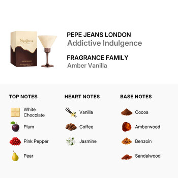Designed by the iconic fashion house Pepe Jeans London, based in the United Kingdom, this fragrance reflects modern style and bold personality. Addictive Indulgence is more than just a perfume—it's an experience that wraps you in confidence and sweetness.