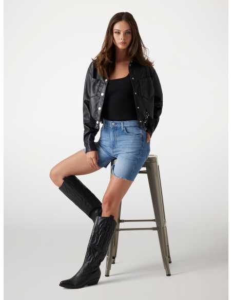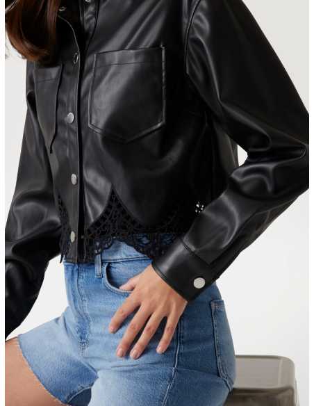 პერანგი GUESS - CLOTHILDE PU MIX LACE SHACKET