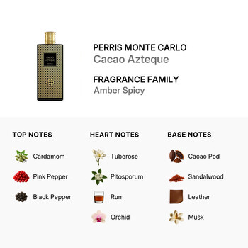Discover the captivating allure of Perris Monte Carlo's Cacao Azteque, a unisex fragrance that has enchanted perfume lovers since its launch in 2017. Rooted in the Amber Spicy family, this elegant Eau De Parfum Spray offers a symphony of exotic notes that transport you to a world of aromatic bliss. Standing proudly as a niche fragrance brand from Monaco, Perris Monte Carlo crafts olfactory experiences that are both luxurious and unique.