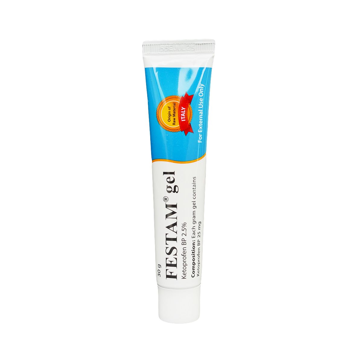 ფესტამი® გელი: გელის ყოველი გრამი შეიცავს >კეტოპროფენი BP 25 მგ-ს.