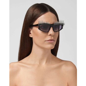 Philipp Plein Sunglasses. Series Beatrix. Series number: WES009. Color code: PXV073N_CCWK. Shape: Rectangular. Lens Width: 58 mm. Lens Bridge: 15 mm. Arm Length: 145 mm. 100% UV protection. Frame Material: Acetate. Frame Color: Black. Rim Style: Full-Rim. UPC/EAN code: 4062697328733. Philipp Plein Beatrix Rectangular Ladies Sunglasses 000-WES0097-PXV073N-CCWK. Made in Italy.