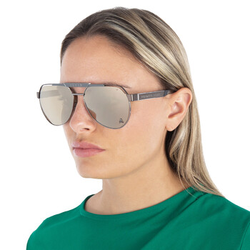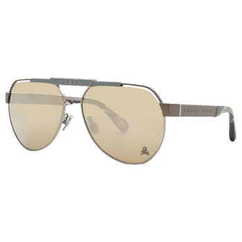 Philipp Plein Sunglasses. Series number: SPP073M. Color code: 566G. Shape: Pilot. Lens Width: 63 mm. Lens Bridge: 16 mm. Arm Length: 145 mm. 100% UV protection. Non-Polarized. Frame Material: Metal. Frame Color: Gunmetal. Lenses Type: Bronze. UPC/EAN code: 190605423936. Philipp Plein Bronze Pilot Men's Sunglasses SPP073M 566G 63.