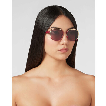 Philipp Plein Sunglasses. Series number: WES0087. Color code: PTE003N_3516. Shape: Cat Eye. Lens Width: 55 mm. Lens Bridge: 17 mm. Arm Length: 140 mm. 100% UV protection. Frame Material: Metal. Frame Color: Pink. Rim Style: Full-Rim. UPC/EAN code: 4062346124532. Philipp Plein Cat Eye Ladies Sunglasses 000-WES0087-PTE003N-3516. Made in Italy.