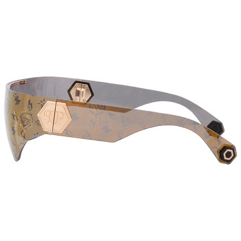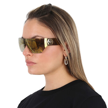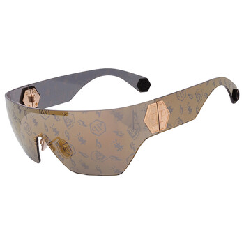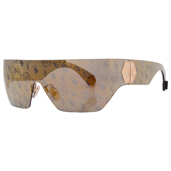 Philipp Plein Sunglasses. Series number: SPP029M. Color code: 300L. Shape: Shield. Lens Width: 99 mm. Lens Bridge: 0 mm. Arm Length: 120 mm. 100% UV protection. Non-Polarized. Frame Material: Metal. Frame Color: Rose Gold. Lenses Type: Gold Mirror Logo. Rim Style: Rimless. UPC/EAN code: 190605373187. Philipp Plein Gold Mirror Logo Shield Ladies Sunglasses SPP029M 300L 99.