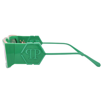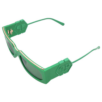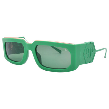 Philipp Plein Sunglasses. Series number: SPP119M. Color code: 0859. Shape: Rectangular. Lens Width: 58 mm. Lens Bridge: 21 mm. Arm Length: 135 mm. 100% UV protection. Non-Polarized. Frame Material: Acetate. Frame Color: Green. Lenses Type: Green. Rim Style: Full-Rim. UPC/EAN code: 190605477540. Philipp Plein Green Rectangular Ladies Sunglasses SPP119M 0859 58.