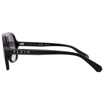 Philipp Plein Sunglasses. Series number: SPP004M. Color code: 0700. Shape: Navigator. Lens Width: 61 mm. Lens Bridge: 13 mm. Arm Length: 145 mm. 100% UV protection. Non-Polarized. Frame Material: Acetate. Frame Color: Black. Lenses Type: Grey Gradient. Rim Style: Full-Rim. UPC/EAN code: 190605356500. Philipp Plein Grey Gradient Navigator Men's Sunglasses SPP004M 0700 61.