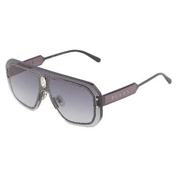 Philipp Plein Sunglasses. Series number: SPP050. Color code: 0541. Shape: Shield. Lens Width: 99 mm. Lens Bridge: 00 mm. Arm Length: 150 mm. 100% UV protection. Non-Polarized. Frame Material: Plastic. Frame Color: Matte Black. Lenses Type: Grey Gradient. Rim Style: Full-Rim. UPC/EAN code: 190605399279. Philipp Plein Grey Gradient Shield Unisex Sunglasses SPP050 0541 99.