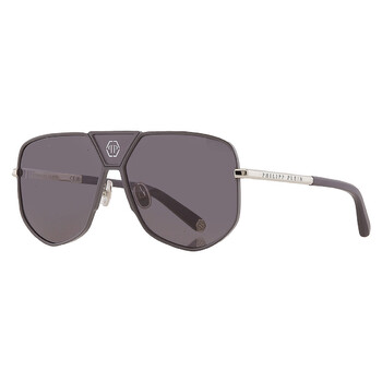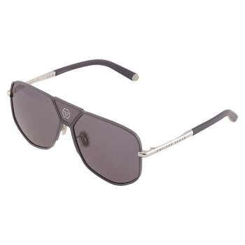 Philipp Plein Sunglasses. Series number: SPP009M. Color code: 0H70. Shape: Navigator. Lens Width: 61 mm. Lens Bridge: 14 mm. Arm Length: 145 mm. 100% UV protection. Non-Polarized. Frame Material: Metal. Frame Color: Silver. Lenses Type: Grey. Rim Style: Full-Rim. UPC/EAN code: 190605356906. Philipp Plein Grey Navigator Men's Sunglasses SPP009M 0H70 61.