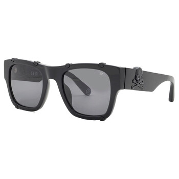 Philipp Plein Sunglasses. Series number: SPP042V. Color code: 700V. Shape: Square. Lens Width: 54 mm. Lens Bridge: 23 mm. Arm Length: 145 mm. 100% UV protection. Non-Polarized. Frame Material: Plastic. Frame Color: Black. Lenses Type: Grey. Rim Style: Full-Rim. UPC/EAN code: 190605423950. Philipp Plein Grey Square Men's Sunglasses SPP042V 700V 54.