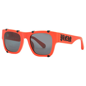 Philipp Plein Sunglasses. Series number: SPP042W. Color code: V47F. Shape: Square. Lens Width: 54 mm. Lens Bridge: 23 mm. Arm Length: 145 mm. 100% UV protection. Frame Material: Acetate. Frame Color: Orange. Lenses Type: Grey. Rim Style: Full-Rim. UPC/EAN code: 190605423974. Philipp Plein Grey Square Unisex Sunglasses SPP042W V47F 54.